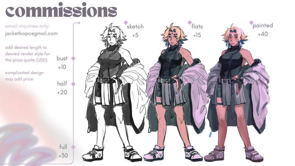 • Please EMAIL inquiries to "[email protected]". DMs at any particular social will be lost.•Inquiries are all subject to be declined case by case. Below is generally what I will approve but is not a definitive "yes/no" list.